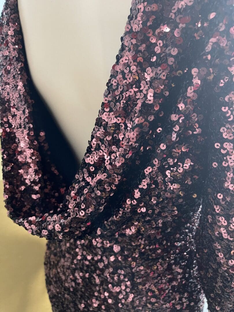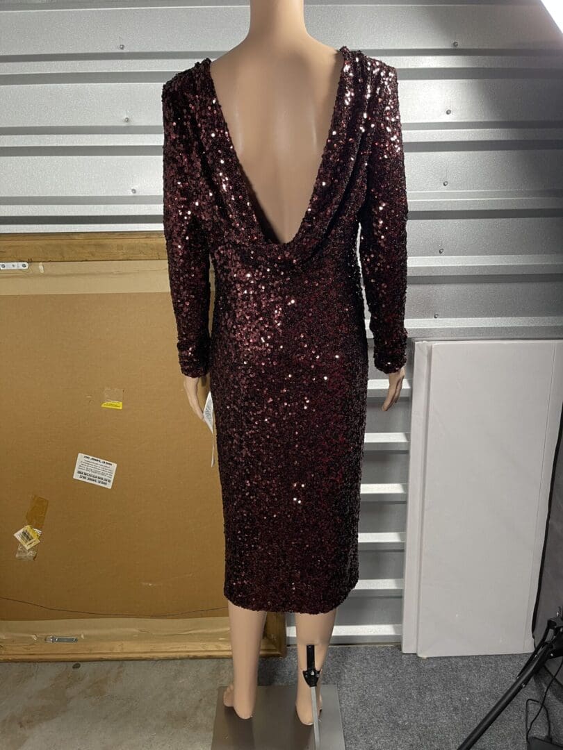 Dress The Population, Burgundy sequins drop back long sleeve dress size L
