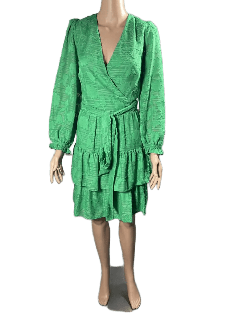 Eliza J. bright green long sleeve ruffle belted dress size 16
