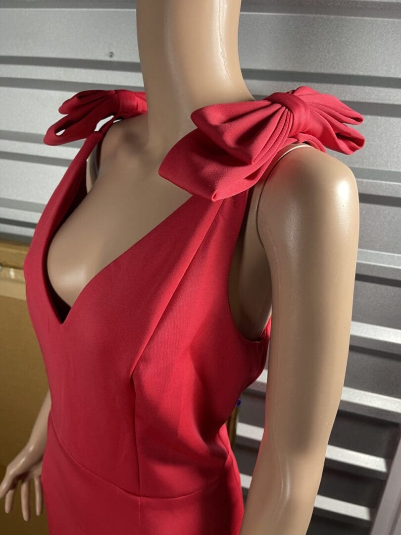 Eliza J. red V neck sleeveless dress, bow design accent on shoulders size 16