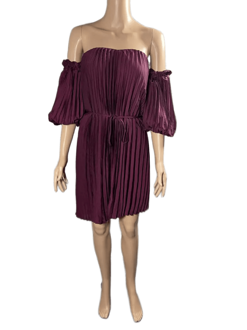 Express,purple satin pleated belted off shoulder dress size S