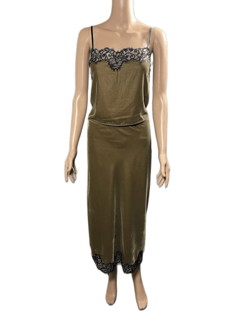 House of Harlow 1996, green velvet lace embellished skirt 2pcs set with slim strap top size M