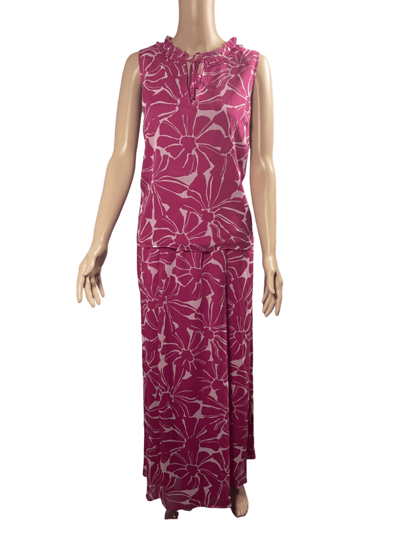 I.N.C pink long chiffon ruffle skirt set with sleeveless ruffle neck tie blouse size M