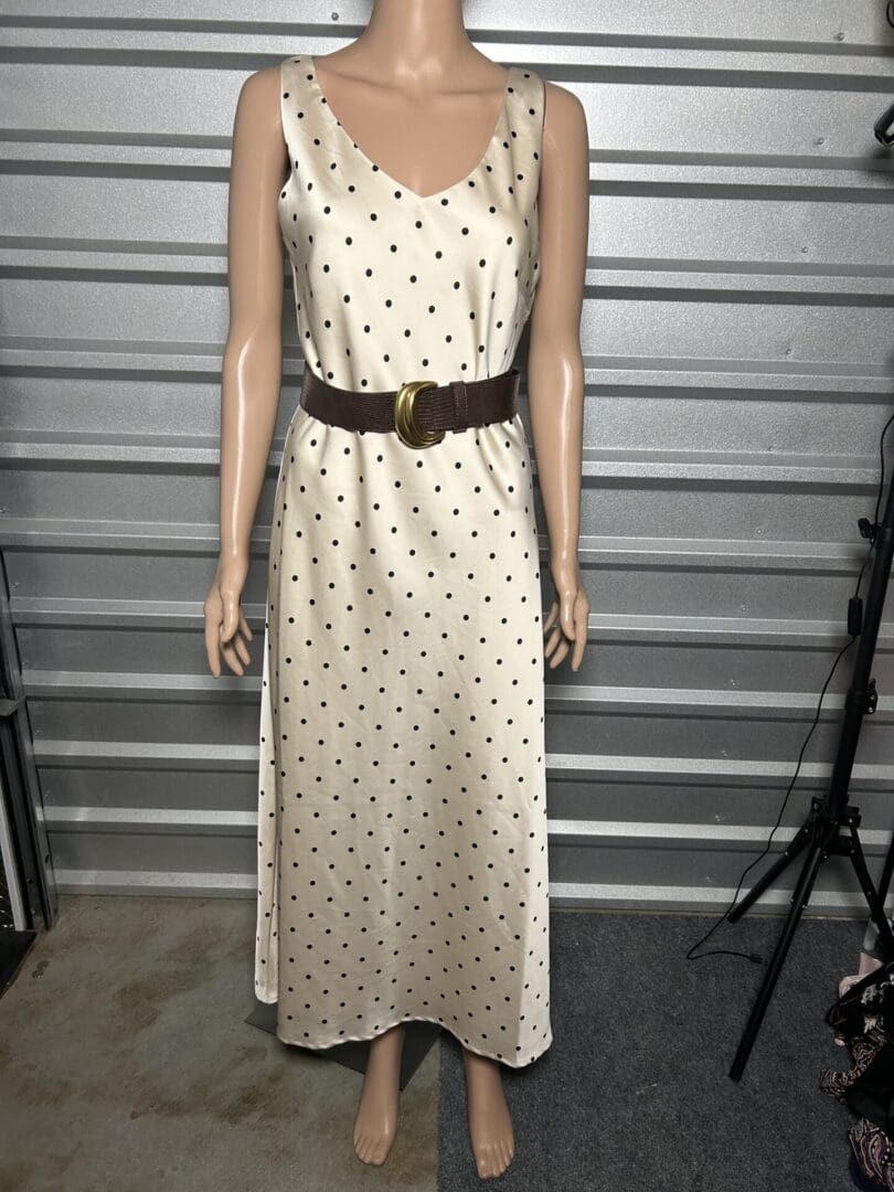 Home / Occasion Dress and Jumpsuits / Joie satin beige with black dots dress size S