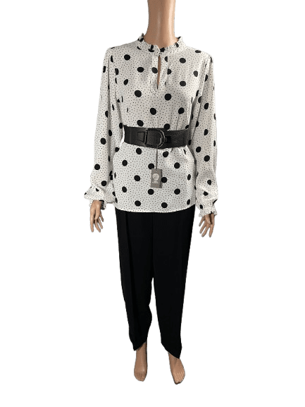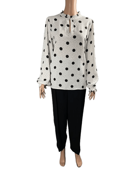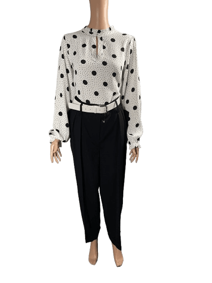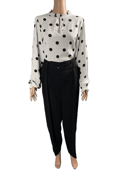 Karl Lagerfeld size 14 black deluxe ankle lengh pants set with size L white/black dots deluxe long sleeve blouse