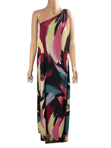 Laundry sheer multi color one shoulder long dress size 6(D688).