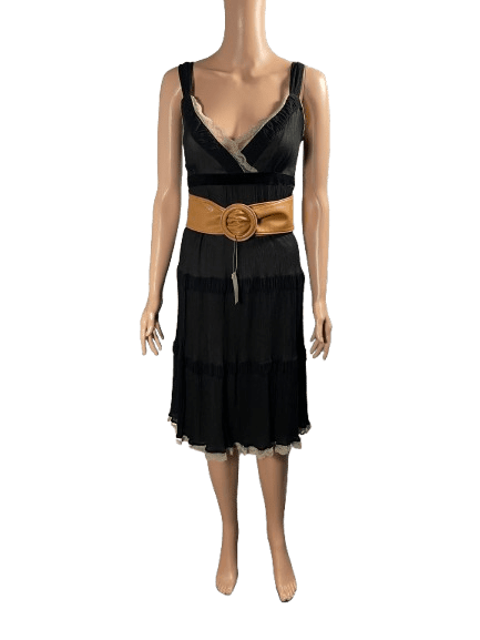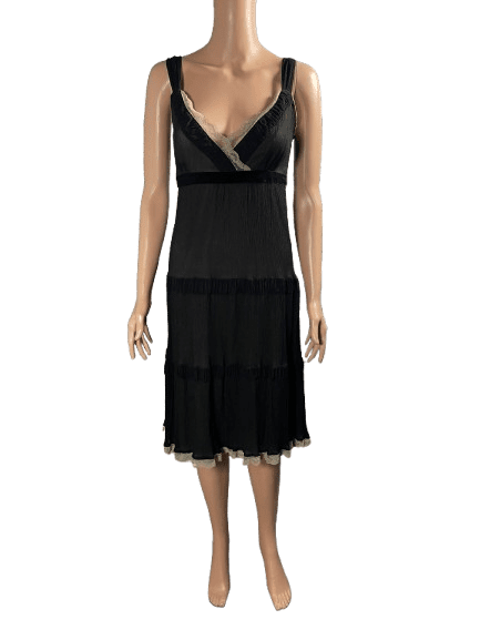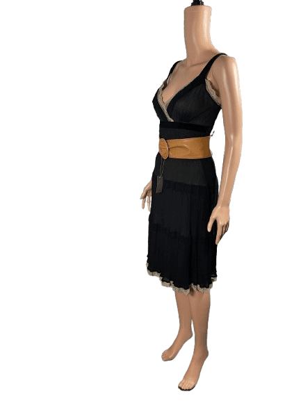 Michael Kors one of the kind 100% silk black dress beige lace neck.