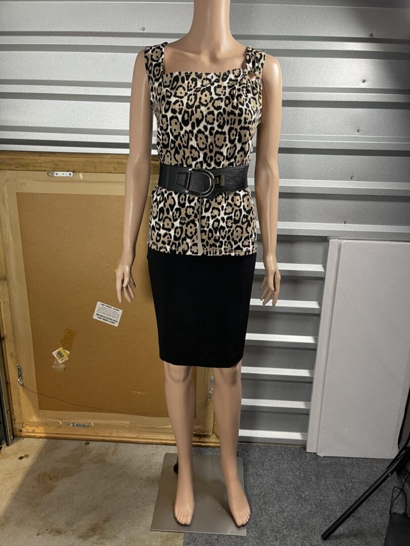 Nine West, black skirt 2pcs set with sleeveless animal print top with golden medal logo printed on a shoulder size XL
