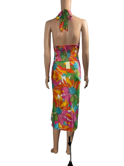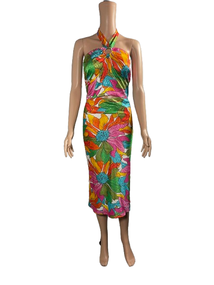 Rachel Zoe Satin multi color skirt set with halter top size L