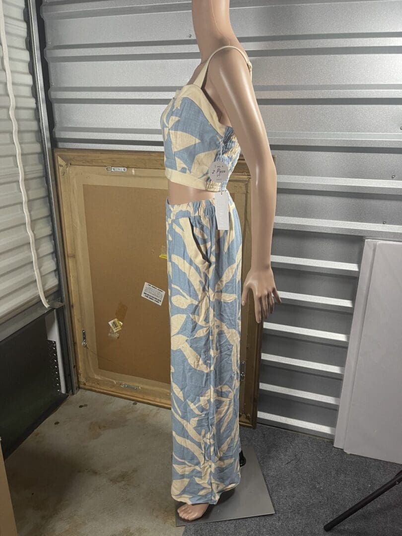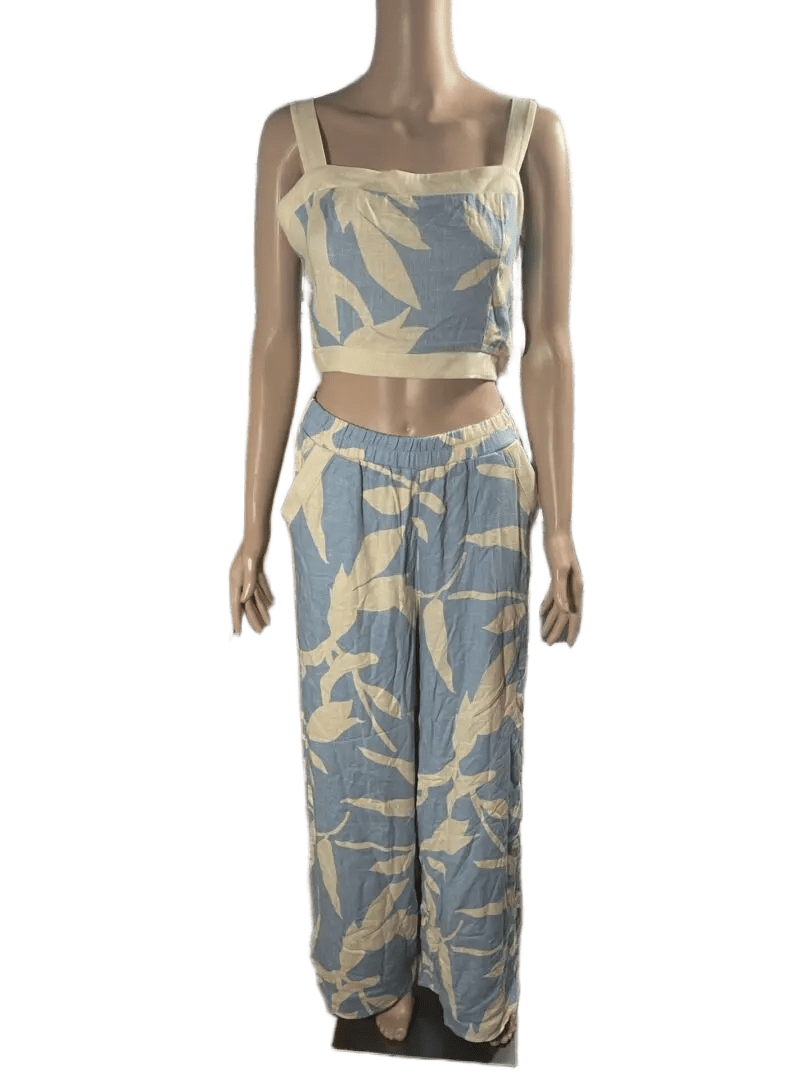 Sienna Sky, beige/blue wide leg pant 2pcs set with sleeveless cropped top