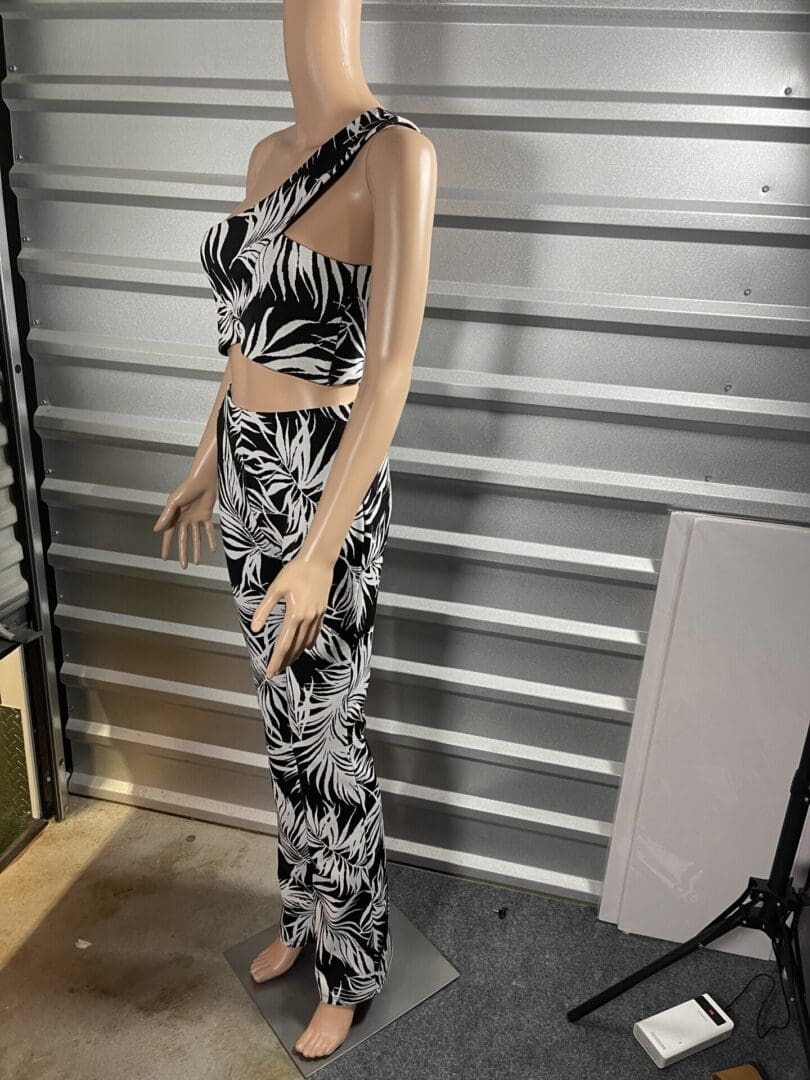 Zara, black and white flare pant with one shoulder cropped top size M