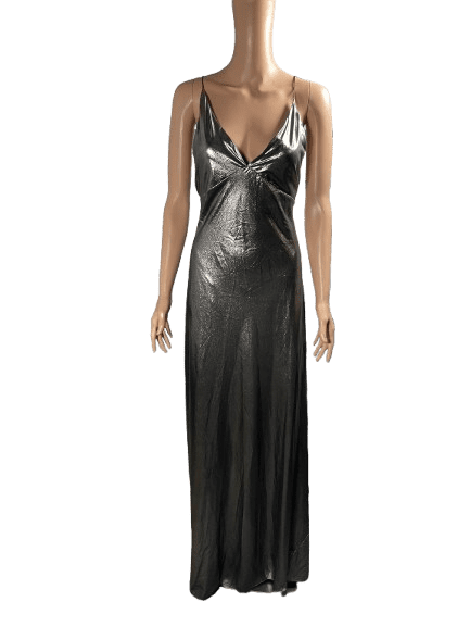 Zara gray metallic shiny long dress, decollate’s back, slim strap V neck.